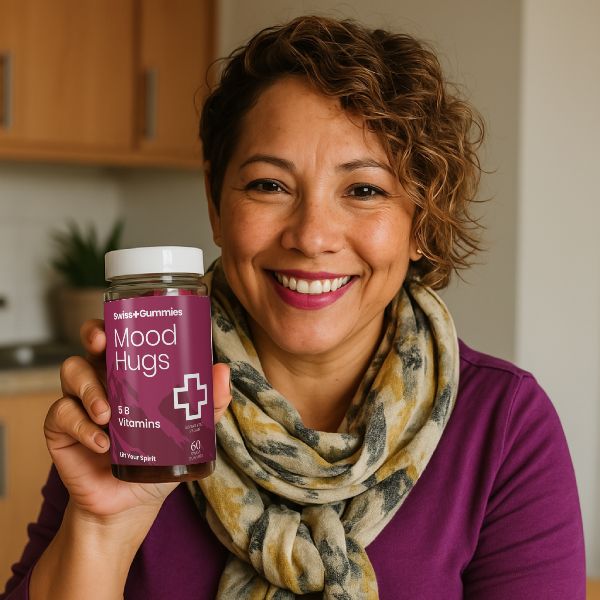 Give your day a gentle lift with Swiss Gummies Mood Hugs. These delicious, sugar-free, plant-based gummies are formulated with 5 essential B vitamins, calming adaptogens like Ashwagandha and Rhodiola, and the amino acid L-Theanine—each chosen to support your emotional balance and mental clarity. Whether you’re managing daily stress or simply want to feel more like yourself again, Mood Hugs offer a reassuring, natural boost that fits right into your daily rhythm.