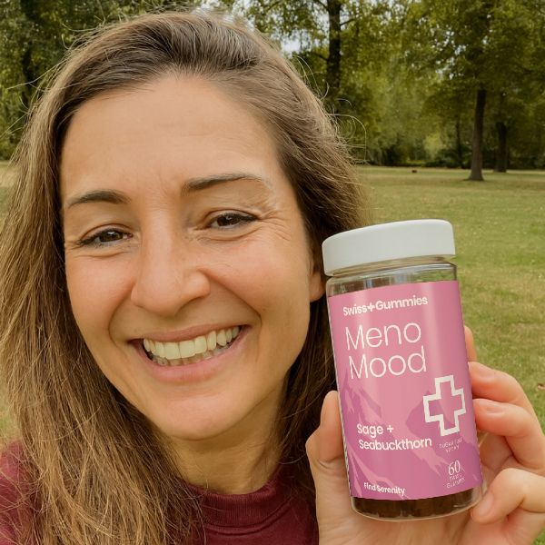 Finden Sie Ihre innere Ruhe – natürlich begleitet. Swiss Gummies Meno Mood wurde speziell entwickelt, um Frauen während der natürlichen Phasen des Wechsels sanft zu unterstützen. Mit Salbei und Sanddorn sowie sorgfältig abgestimmten Vitaminen trägt diese vegane, zuckerfreie Rezeptur zu emotionalem Gleichgewicht, Energie und Wohlbefinden bei. Schweizer Präzision in jeder Gummibärli – für mehr Gelassenheit im Alltag.