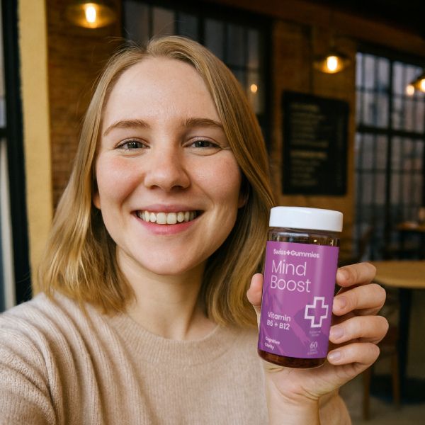 Unterstützen Sie Ihre geistige Klarheit und tägliche Konzentration mit Swiss Gummies Mind Boost. Diese veganen Gummies aus der Schweiz kombinieren wertvolle B-Vitamine mit pflanzlichen Extrakten wie grünem Tee und Ginseng, um Ihre kognitive Leistung gezielt zu fördern. Ohne Zuckerzusatz, Gelatine oder Gluten – nur mit sorgfältig ausgewählten Inhaltsstoffen, auf die Sie sich verlassen können.