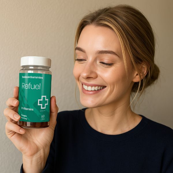 Starten Sie mit natürlicher Energie und Schweizer Präzision in den Tag. Swiss Gummies Refuel sind pflanzliche, zuckerfreie Gummies mit einer umfassenden Kombination wichtiger B-Vitamine – entwickelt, um Müdigkeit zu reduzieren und die tägliche Vitalität zu unterstützen. Ohne Gelatine, Laktose, Gluten oder künstliche Farbstoffe hergestellt, bieten diese fruchtigen Gummies eine praktische und wohlschmeckende Möglichkeit, Ihre Energie über den Tag hinweg zu erhalten.
